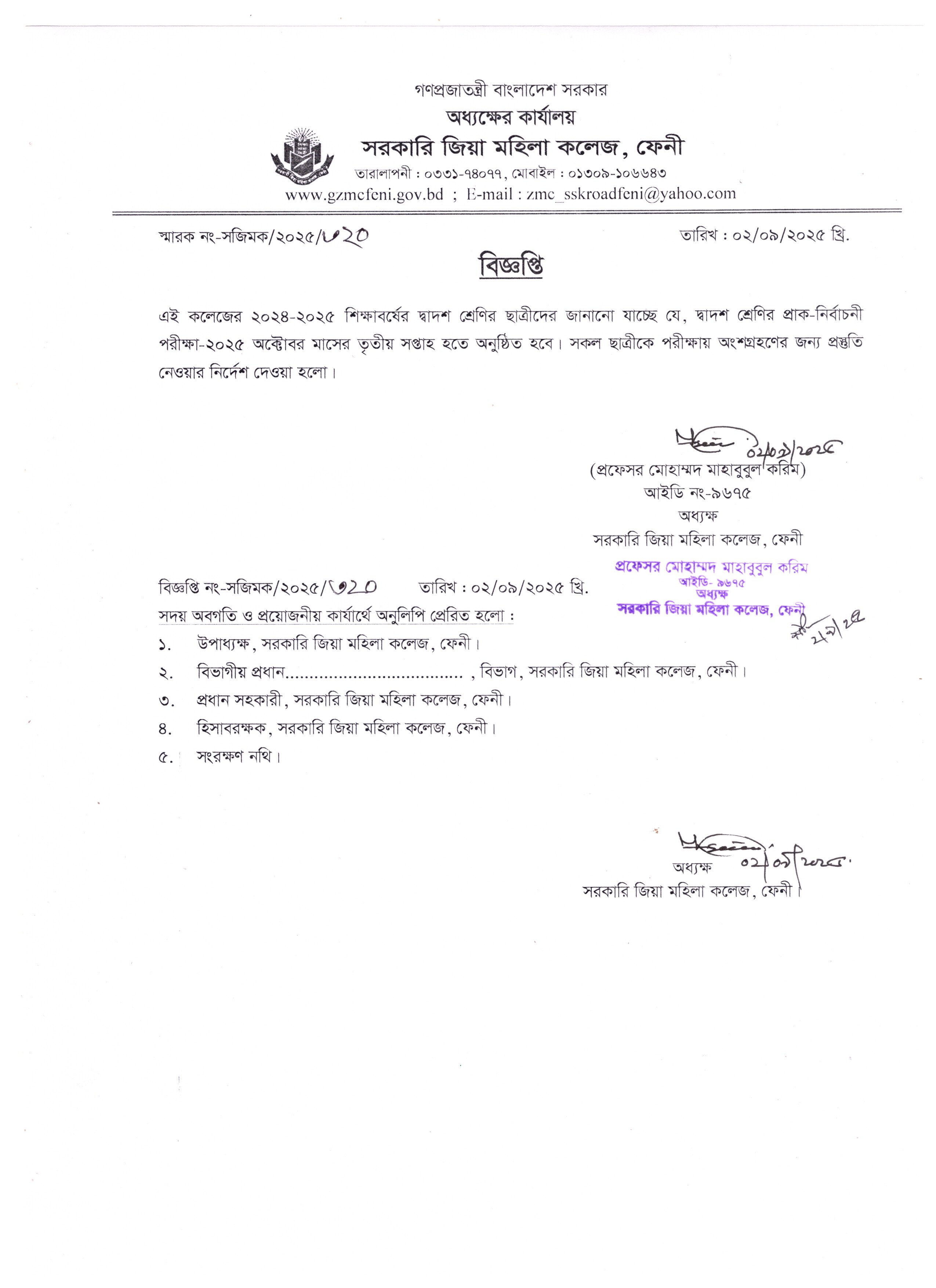 দ্বাদশ শ্রেণির প্রাক-নির্বাচনী পরীক্ষা-২০২৫ এর প্রস্তুতি গ্রহণের বিজ্ঞপ্তি। Download