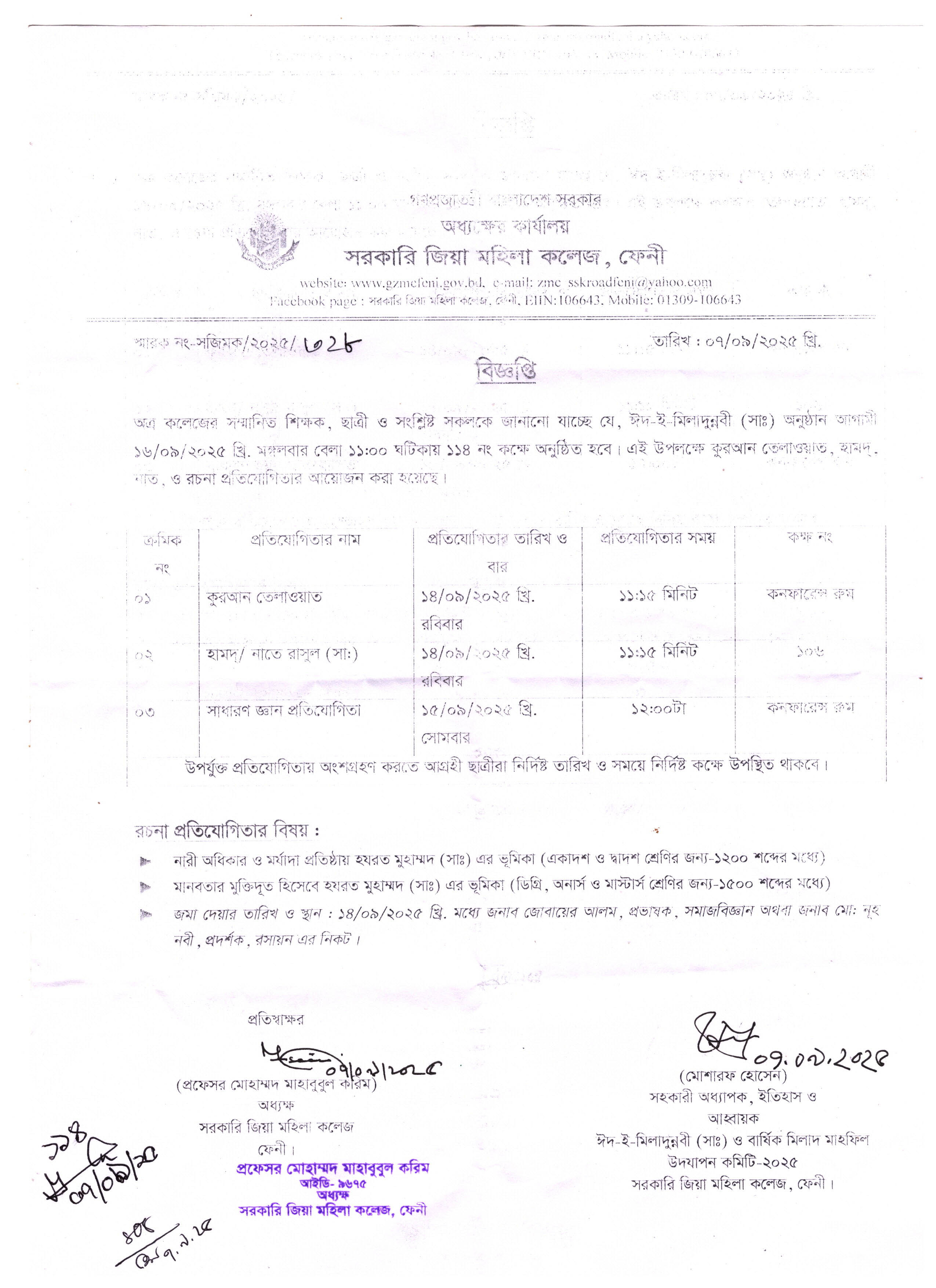 ঈদ-ই-মিলাদুন্নবী (সা:) উদযাপনের সময়সূচি। Download
