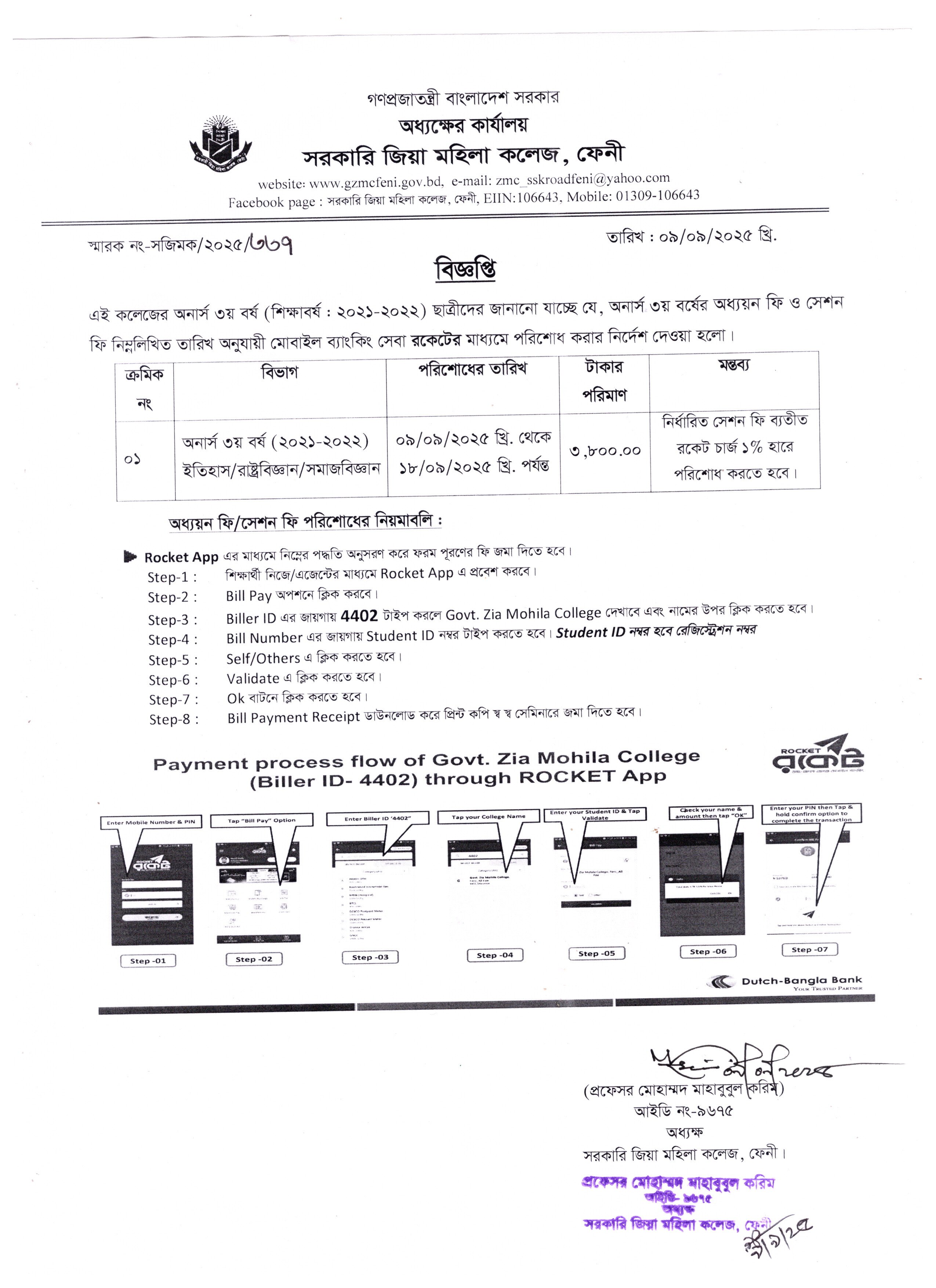 - ২০২১-২০২২ শিক্ষাবর্ষের অনার্স ৩য় বর্ষের অধ্যয়ন ফি ও সেশন ফি পরিশোধের বিজ্ঞপ্তি।