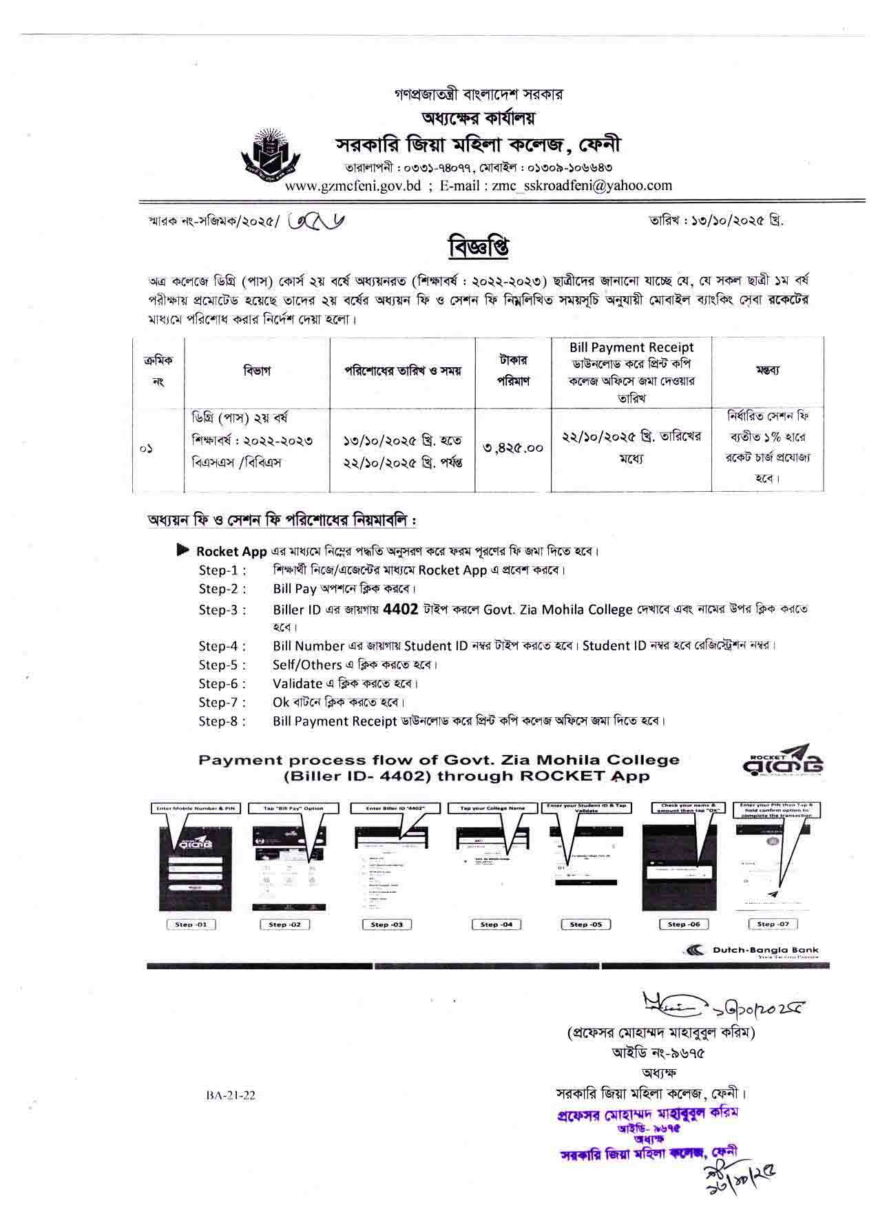 - ২০২২-২০২৩ শিক্ষাবর্ষের ডিগ্রি (পাস) ২য় বর্ষের অধ্যয়ন ফি ও সেশন ফি পরিশোধের বিজ্ঞপ্তি।