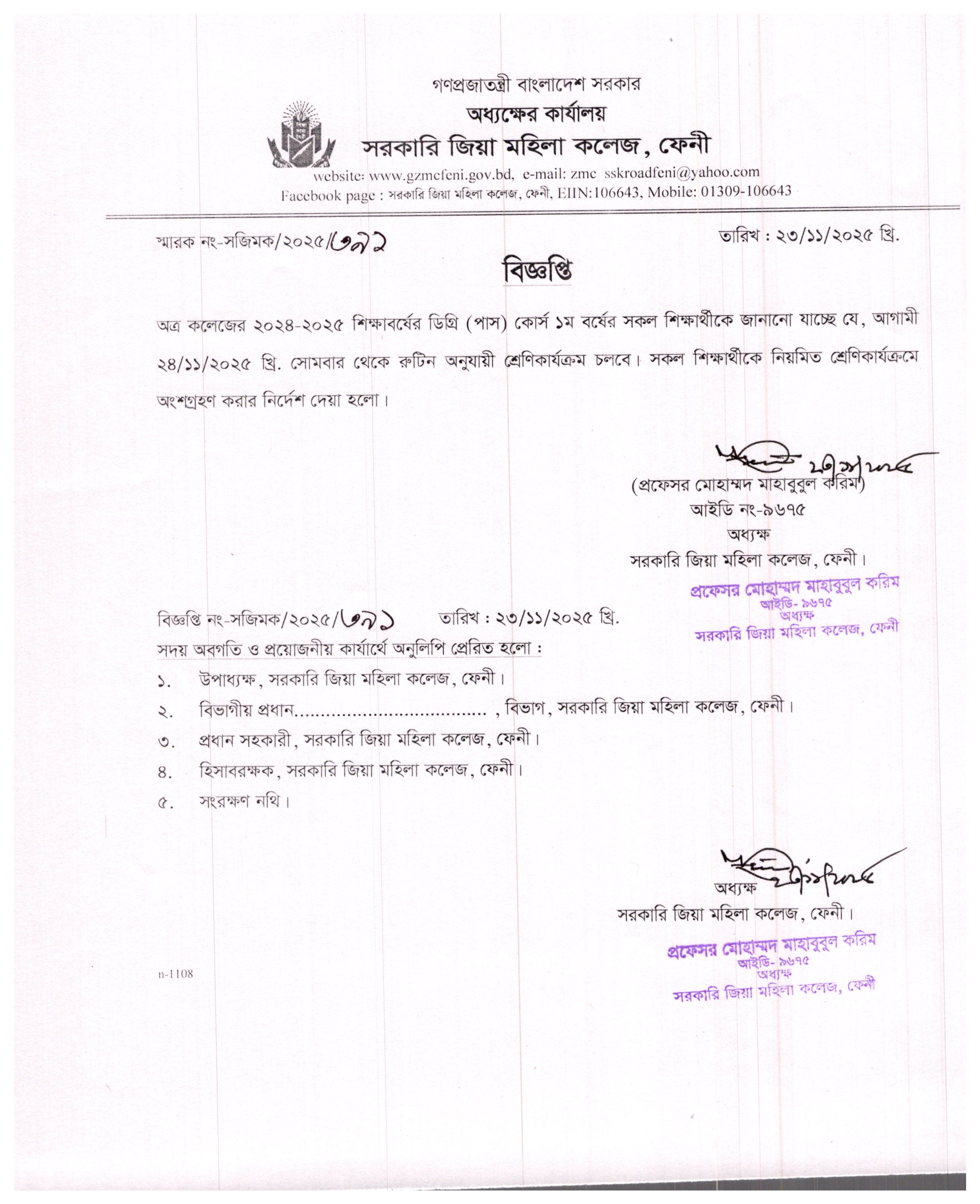 - ২০২৪-২০২৫ শিক্ষাবর্ষের ডিগ্রি (পাস) কোর্স ১ম বর্ষের শ্রেণিকার্যক্রম শুরুর বিজ্ঞপ্তি।
