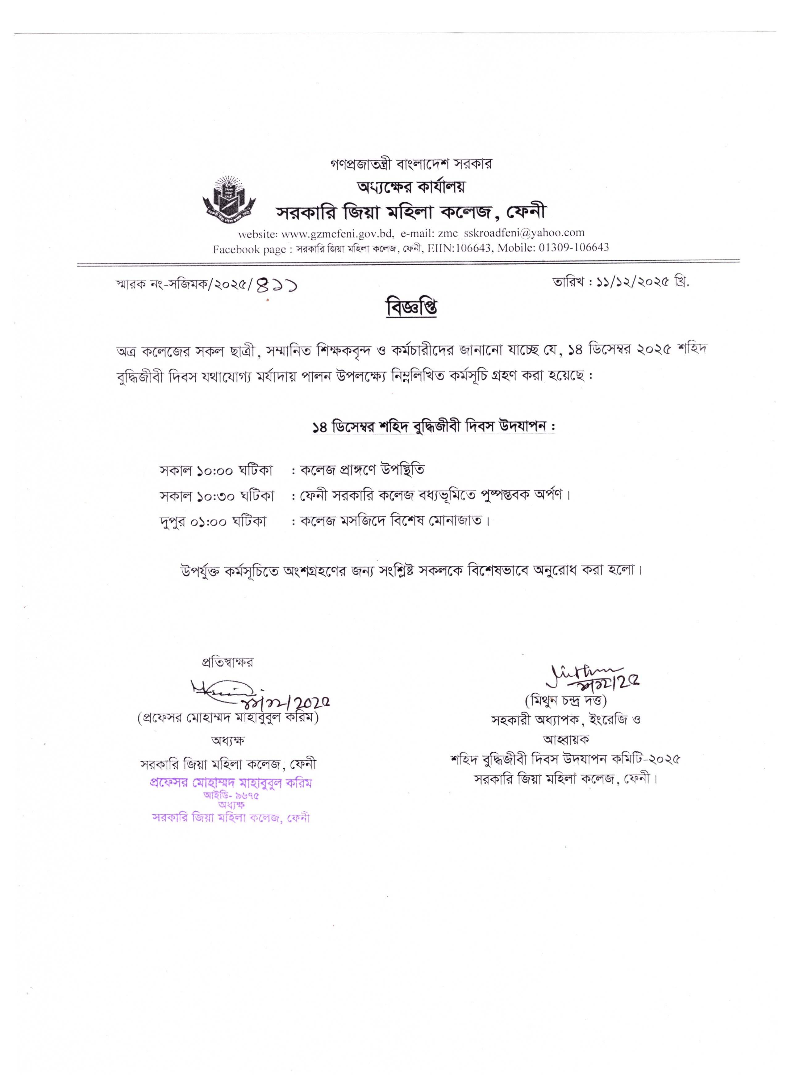 - ১৪ ডিসেম্বর শহিদ বুদ্ধিজীবী দিবস-২০২৫ উদযাপন উপলক্ষ্যে অনুষ্ঠানসূচি।